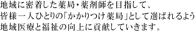 コスモス調剤薬局が目指すのは患者様が安心して依頼できる「かかりつけ薬局」です。